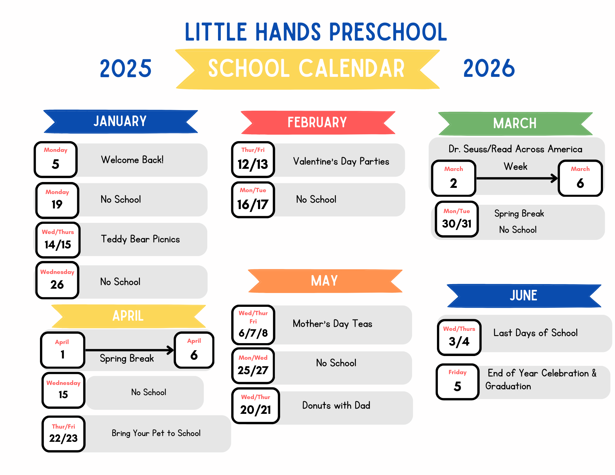 Little Hands Preschool Calendar